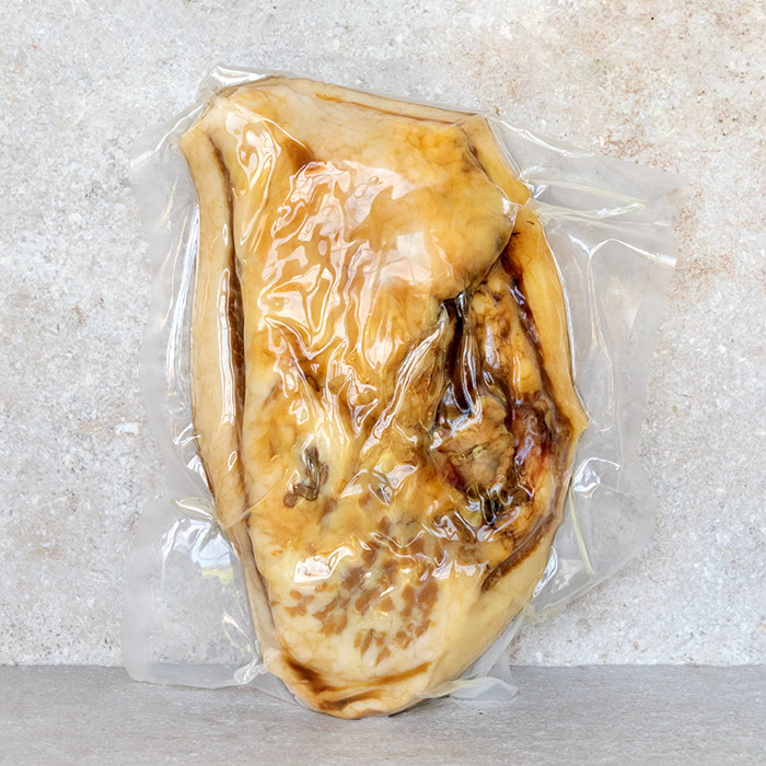Our papada ibérica de bellota, also known as Guanciale in Italian, is a cured meat product prepared from pork jowl. In both Spanish and Italian, the name derives from the words “papada” or “guancia” which translates to cheek.