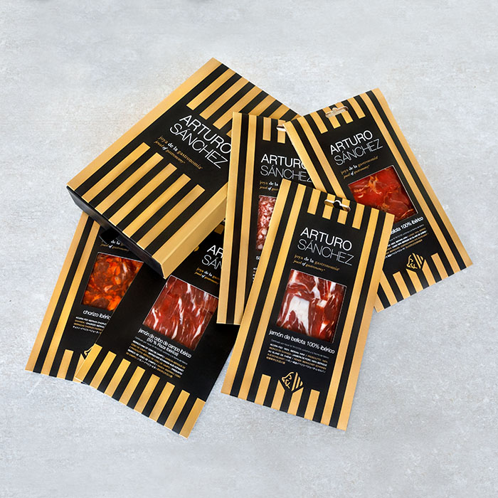 To prepare and serve this exquisite tasting box, take your time and open all the packs and allow them to breathe for 30 minutes before serving. The Arturo Sánchez Ibérico Tasting Box includes:
