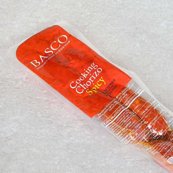 Basco Cooking Chorizo comes in packets of 6 sausages with a three month shelf life. It is a very versatile ingredient to use in all types of cooking or cooking methods.