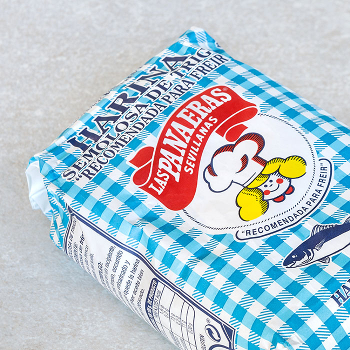Harina Semolosa de Trigo is a special frying flour made from 100% Andalucian Wheat Flour made by Las Panaeras Sevillanas outside Seville since 1975. This flour is the authentic flour used to fry calamares and make proper pescadito frito!