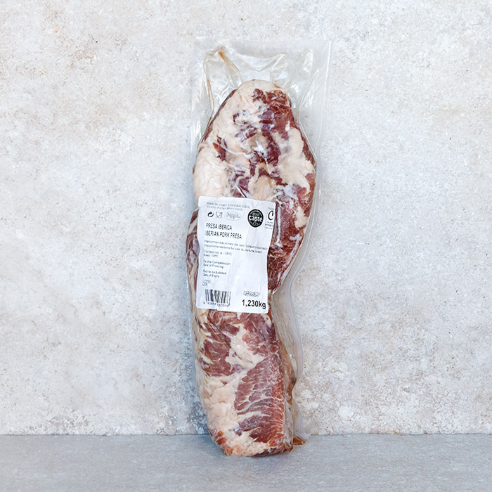 Our favourite way to prepare this incredible pork is to season with salt and pepper and grill or sear the presa, then cook at medium high heat until done. The centre of the steak should still be pink. This cut has less fat than other types of Iberico pork, so be careful not to overcook. Let it rest for 5 minutes, then cut thin slices to best enjoy the flavour.