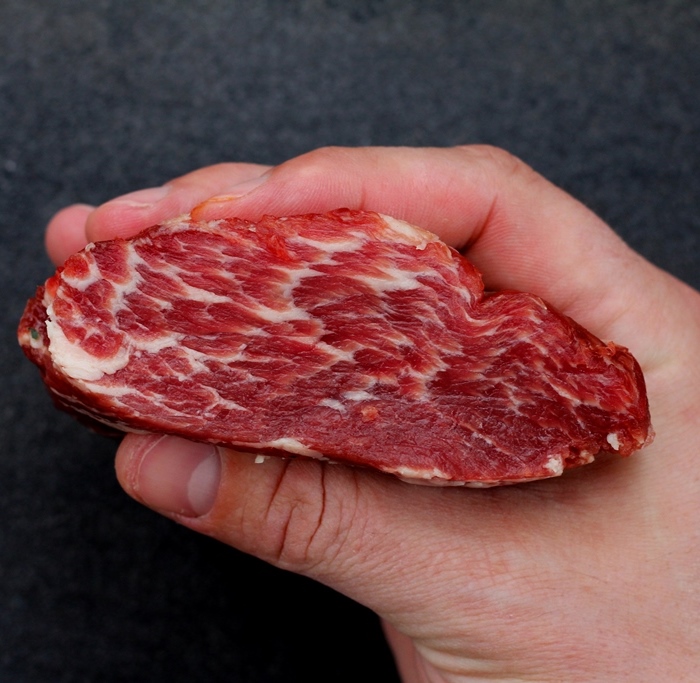 Presa is a thick shoulder steak unlike any other. It is thick and juicy, but leaner than pluma end loin or the secreto flank steak.