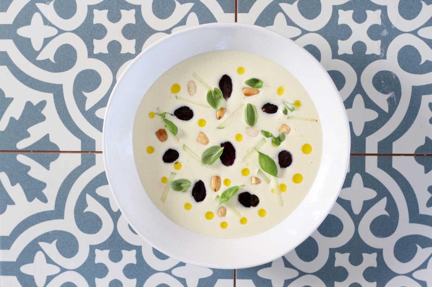 Ajoblanco is a cold almond soup, known as the ‘white gazpacho’ and typical of Andalucian gastronomy. It’s origin is either Roman or Greek but depending on where you are in Andalucia, each county or village claims its invention and dispute the right way of preparing it. The one thing that everyone agrees on, is it’s peasant origins and that is served very cold during the summer months. Ajoblanco is simple to make, all you need is some blanched almonds, stale bread, garlic, water, salt, olive oil and a blender. The soup needs to be made in advance to ensure is very cold when serving it. Depending where you are in Andalucia, Ajoblanco is garnished in a variety of ways. In Malaga, they tend to serve it with moscatel grapes and slices of apple or melon but these days. Ajoblanco is widely served by all the top chefs in Spain, so we can now see more creative garnishes such as Ajoblanco with cured anchovies with strawberries!