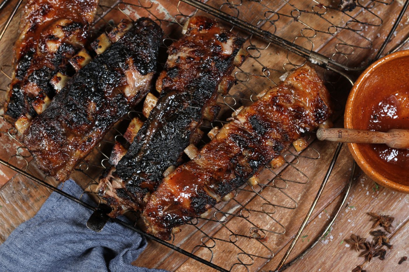 Nothing beats some sticky barbecued ribs, especially if the coated in a delicious sweet and sour glaze. I first tried this dish at Ember Yard in London and instantly fell in love with it. Pork and quince work so well together and the caramelised flavour these barbecued ribs produce, you cannot get from a classic barbecue sauce. The secret to this dish is to slowly cook the ribs in a liquid spiced up with herbs and spices until the meat is tender and finishing them on a hot barbecue coated with the quince glaze.