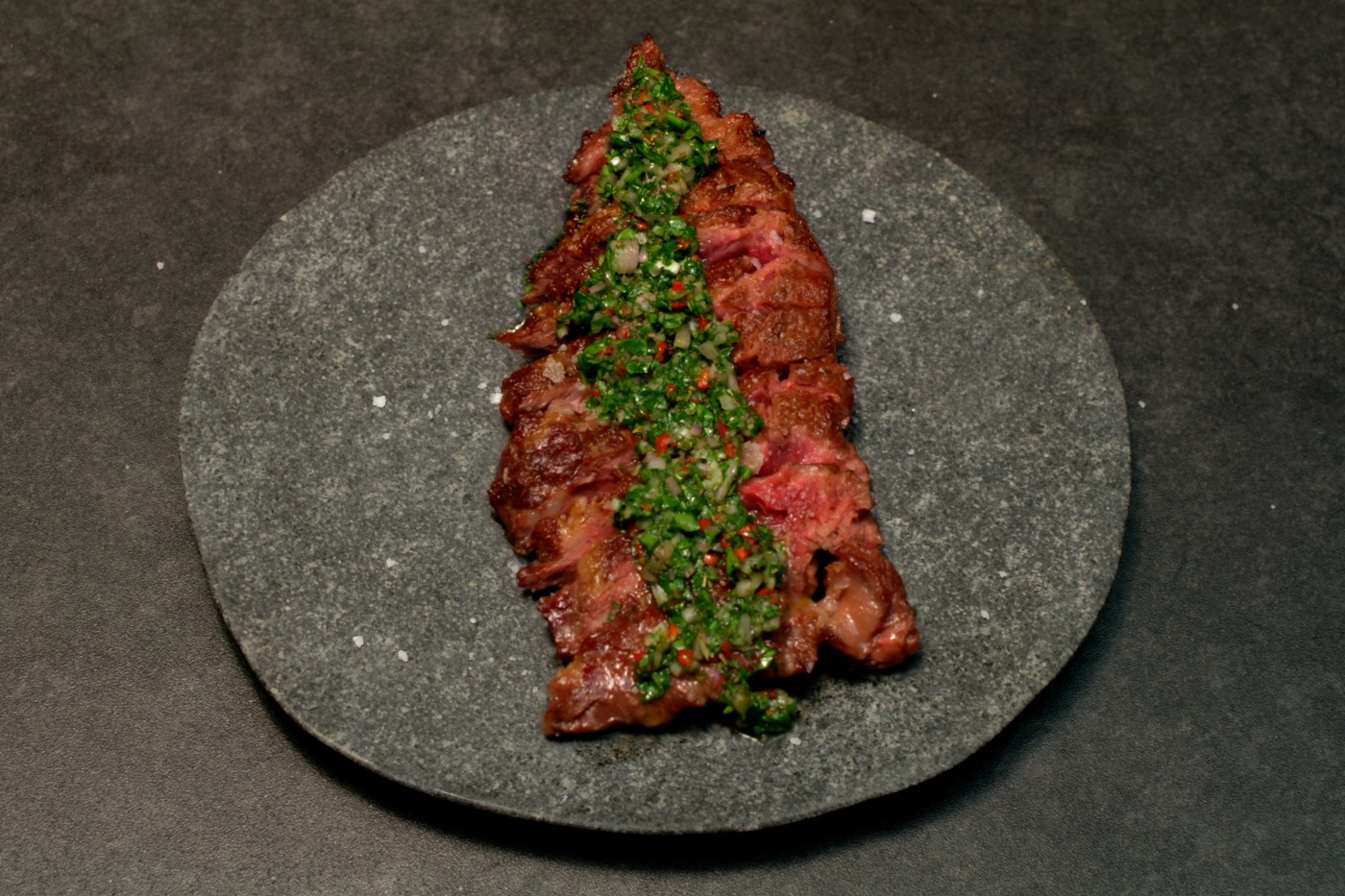 This chimichurri pork recipe features melt in the mouth Pluma Ibérica pork served with a classic South American chimichurri sauce for the ultimate barbecue dish with maximum flavour and minimum effort.