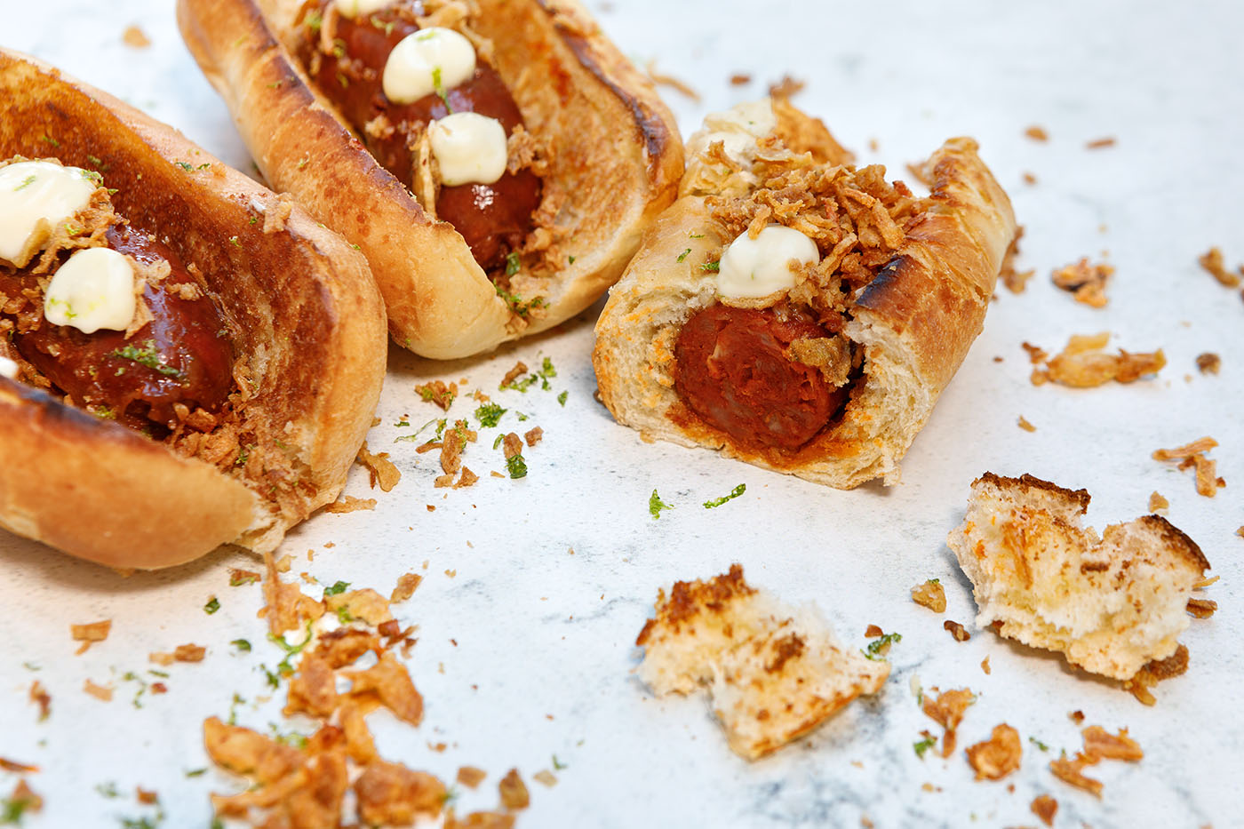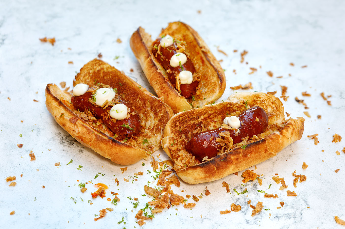 In the Basque Country chorizo sausage is typically poached in cloudy cider and served as a bocadillo during the local summer festivities. In this bocadillo chorizo recipe, I serve them in brioche buns, topped with crispy onions and a dollop of lime mayonnaise for a more modern take on this delicious Basque bocadillo.