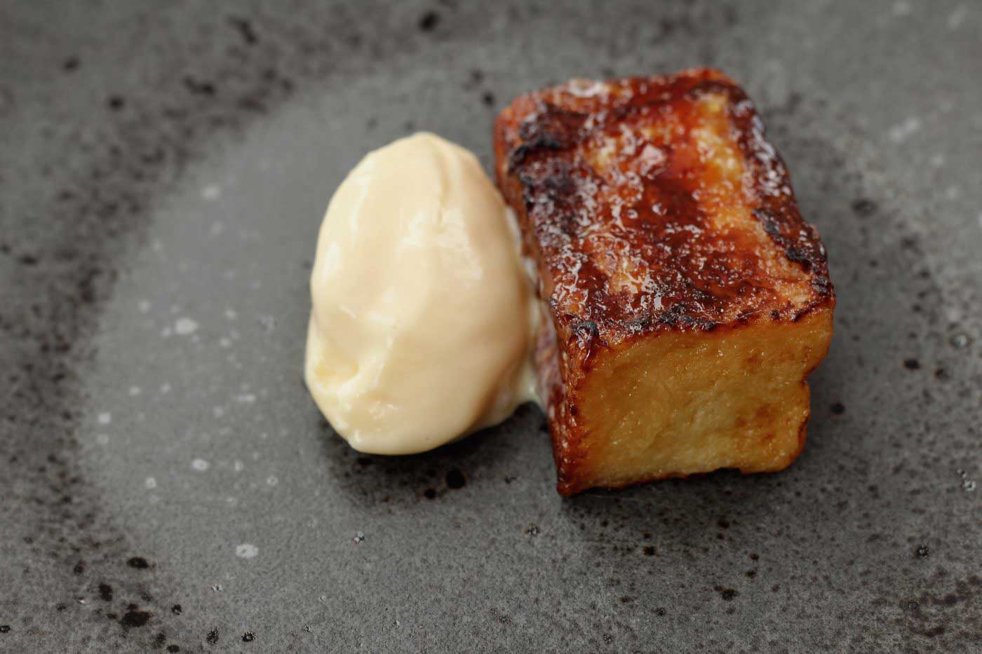 Torrija is an old Spanish dessert typically served during Easter. It’s peasant origins are debated, although there is documented evidence of the dish as early as the 15th century in a book by Juan Del Encina, who recommends torrijas as a post-pregnancy recovery food! Its link to Easter is not clear, although many suggest that torrijas began to get served during Easter due to the large amount of bread available as people did not eat meat during holy week. Torrija is traditionally made from thick slices of stale bread dipped in a mixture of milk, eggs and sugar, before frying it on both sides until golden brown and dusted with cinnamon and sugar. I like to make my torrija with brioche instead of standard white bread, it makes the torrija more special. In this recipe, I pair my torrija with some homemade idiazabal cheese ice cream, a popular Basque cheese made from ewes milk.