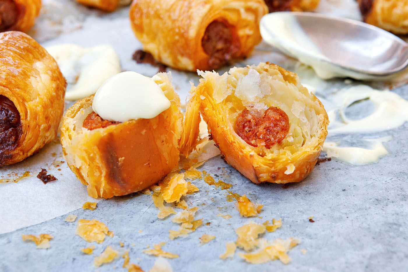 If you want a crowd pleaser, this is your pintxo. I first tried this tasty pintxo in Ganbara, a quality pintxo bar and restaurant in the old quarter of San Sebastian. The flaky puff pastry soaks all the flavour from the chistorra sausage. I like to pair mine with a tangy lemon aioli to balance the buttery pastry and spicy sausage.
