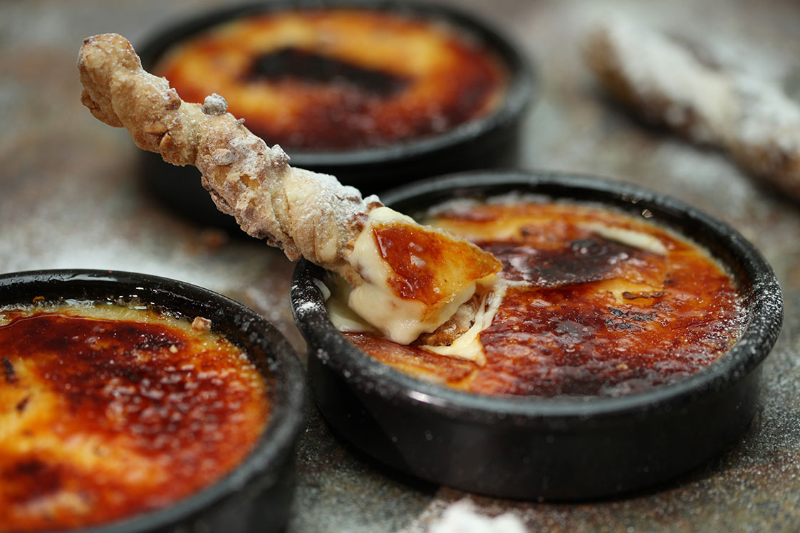 If you think crema catalana is a cheap copy of a crème brûlée, think again. The first known recipe for crema catalana (Catalan cream) or crema cremada (burnt cream) appears in a Catalan cookbook around the 14th century, that is three centuries before recipes for the French crème brûlée started to appear. The recipe included a custard cream, over which sugar was poured and subsequently burnt with a hot iron rod, creating the characteristic burnt crust. There are also some clear differences between a crema catalana and a crème brûlée; the French tend to use vanilla flavoured cream, while the Catalan do so with milk, cinnamon and lemon and orange zest.