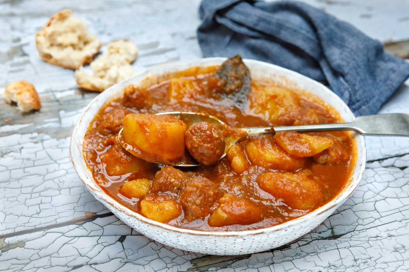 As the name suggests, Patatas a la Riojana is a classic Spanish stew from Rioja made with potatoes and Spanish chorizo slowly simmered in caramelised onions, garlic and finished with choricero pepper puree. It is the perfect dish when you are craving a hearty, warming meal.