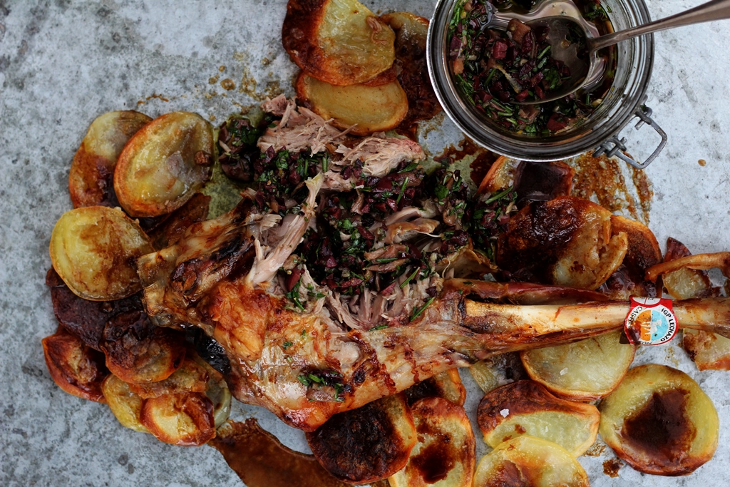 This recipe is very simple to make, the leg of lamb and potatoes are roasted in one tin and the black olive and anchovy salsa can be made whilst the lamb is cooking. The salty anchovies and the earthy flavour of the olives work really well with the soft roasted lamb, lifting the dish and providing freshness. A creamy white wine such as a barrel aged verdejo or chardonnay will pair really well with this dish.
