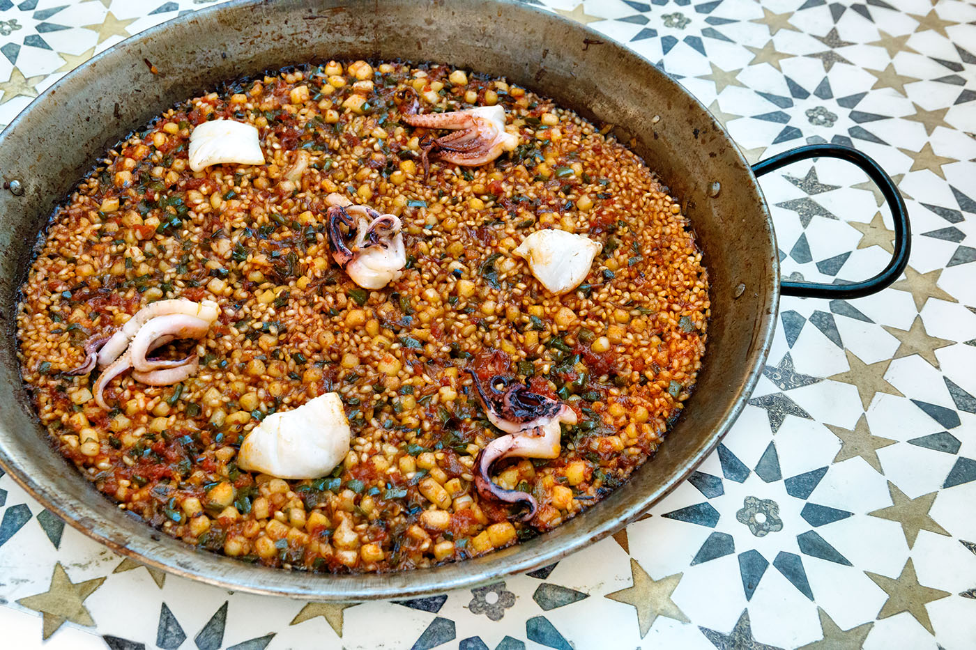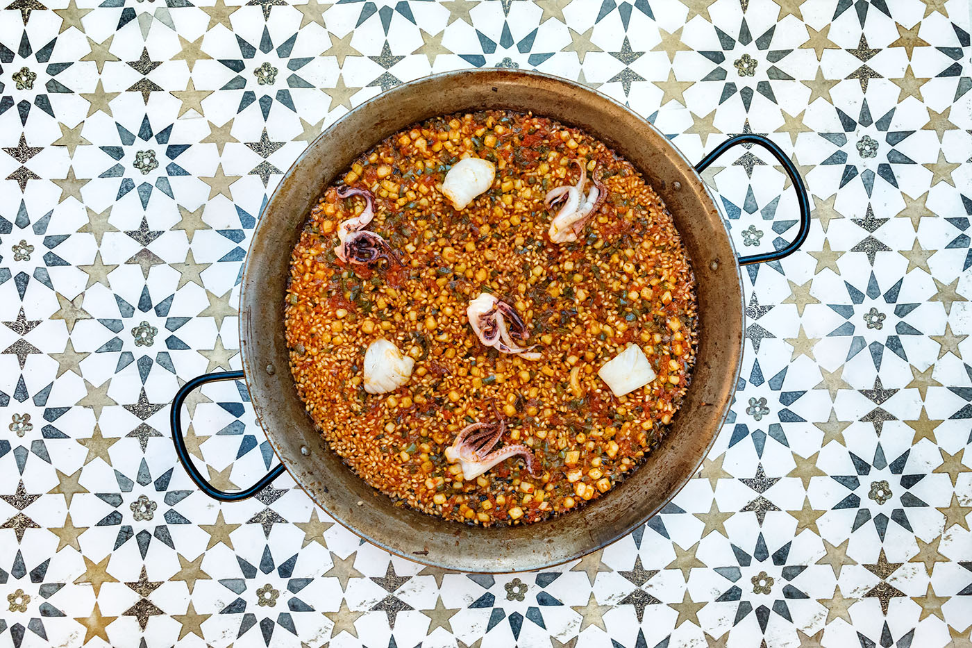 This is probably one of the best arroz dishes I have cooked for a while. The perfect balance of land and sea through the mellow sweetness of the squid and the rich and earthy flavours of the sobrasada sausage. The secret? Blend some of the sobrasada sausage into the hot chicken stock before flavouring the rice for a more intense flavour.