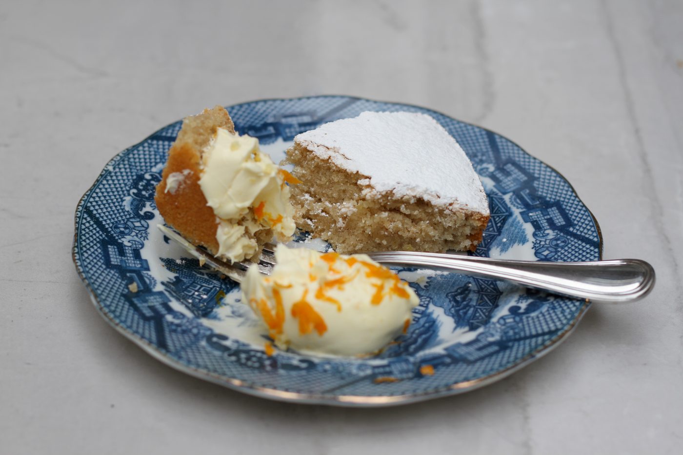 Tarta de Santiago is a traditional Spanish cake which originated in Galicia and that carries the name of the main city in the county but also the name of Spain’s patron saint Santiago (Saint James). First documentation on the production of this dinosaur of Spanish baking dates back to 1577. It was described in those days as torta real (royal torte). I can imagine that the royal element comes from the use of ground almonds, which would have been an expensive ingredient and limited to only upper class society. It was during the 20th century when the Tarta de Santiago was introduced more progressively into Spanish culinary documents and books, classifying it as a traditional Galician bakery product. However, it was a restauranteur called Jose Mora Soto, founder of Casa Moracuando, who, around 1924, began to decorate his almond cake with the cross of Santiago. The union of this traditional Galician product with the city’s most recognisable symbol became so popular across the county that it quickly became the standard when presenting the cake and therefore shaping the identity of this classic Spanish bake. The basis of the Tarta de Santiago recipe is ground almonds, sugar and eggs, however, there are two standard recipe versions for this tart. The most widely known recipe is the simple version where the ground almonds, sugar and egg mixture is baked in a mould. The other version is made with a short crust or puff pastry base. I find the simple version very easy to make and incredibly tasty when cooked properly. It can be served as a dessert, for breakfast or as part of a cake selection for afternoon tea. In this recipe, I have paired the tarta with a dollop of clotted cream and freshly grated orange zest. I like how the creamy texture of the clotted cream combines with the fluffy almond sponge and the orange zest provides a fresh fruity flavour.